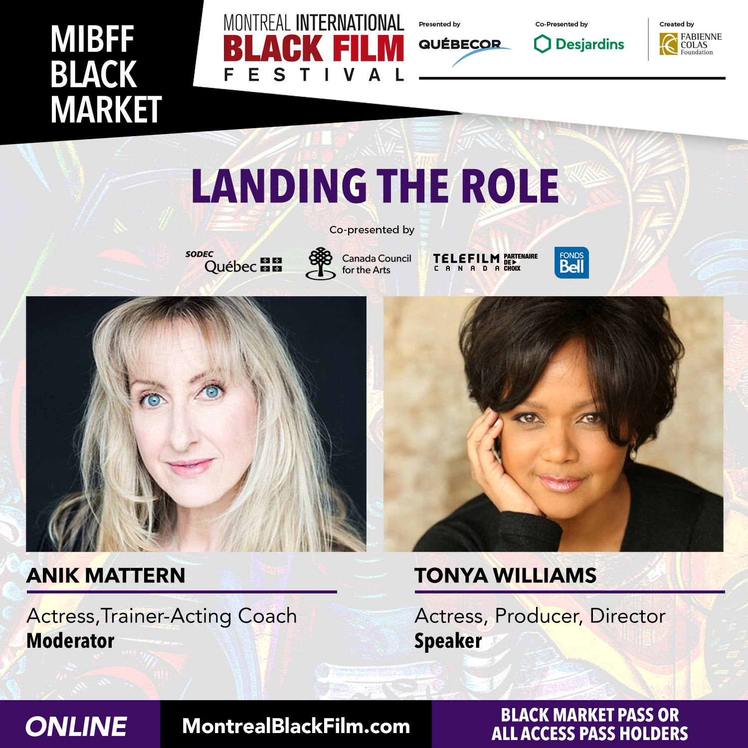 Award-winning actress and acting coach Anik Mattern will be talking with renowned actress, producer & director Tonya Williams about her successful career. Tonya will share her insight into the process of landing the role, preparation, character development, and more. She will also talk about her experiences as a producer, director, Reelworld Screen Institute and AccessReelworld.ca
