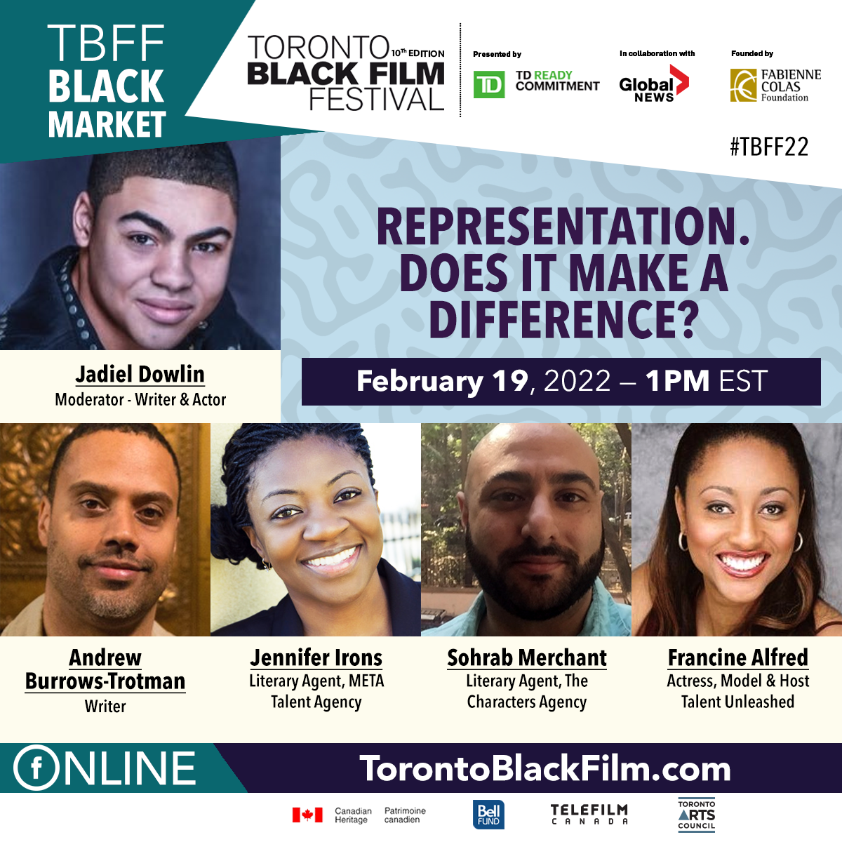 How important is it to have representation in the Canadian Film industry as a Writer, Actor or Director? When selecting representation what, do Black and Racialized Creatives in the film industry look for in an Agent? Do they make a difference in the number of opportunities provided and in landing the job or role? What do Talent Agents look for when selecting the creative talent they represent and, what advice can they give Black and Racialized Creatives who are looking for representation? This panel will feature established Black industry creatives and well-known talent agents who will discuss all of the above.